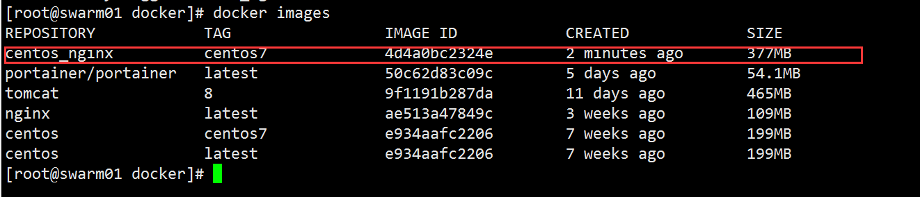 - [root@swarm01 docker]# docker images