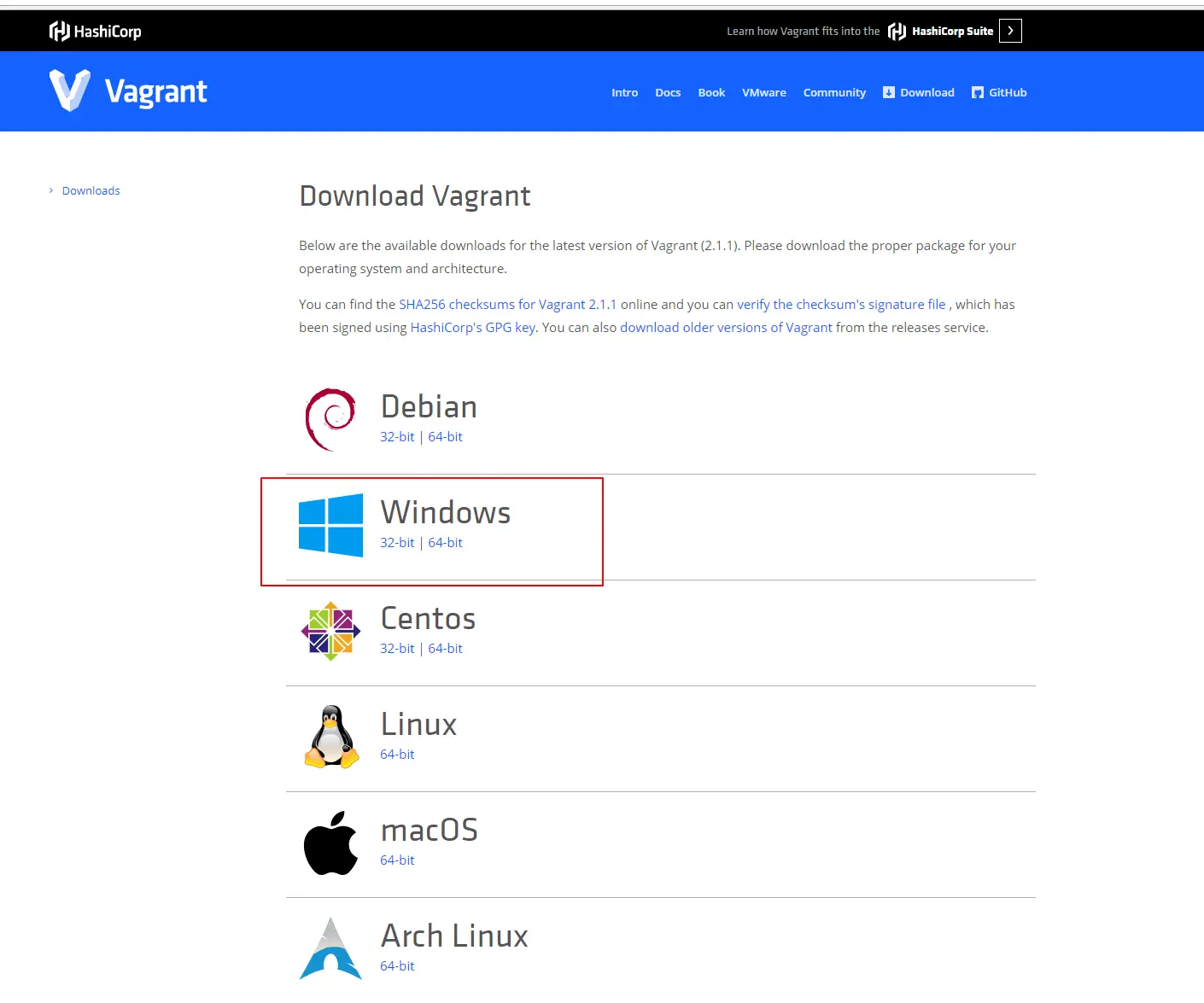 Vargrant下载win版的,然后一直下一步下一步就行了。