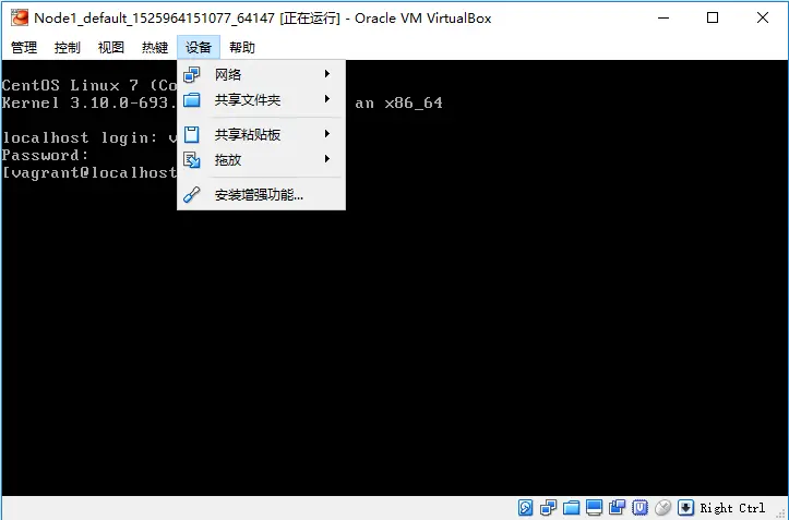 输入默认用户名 : vagrant , 登录密码 : vagrant