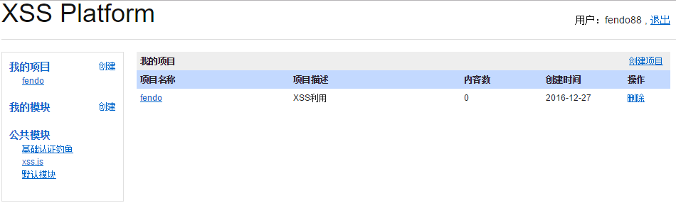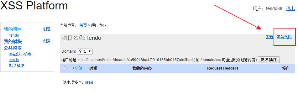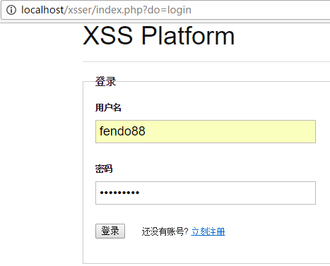 进入搭建好的xsser.me平台首页输入用户名与密码进行登录