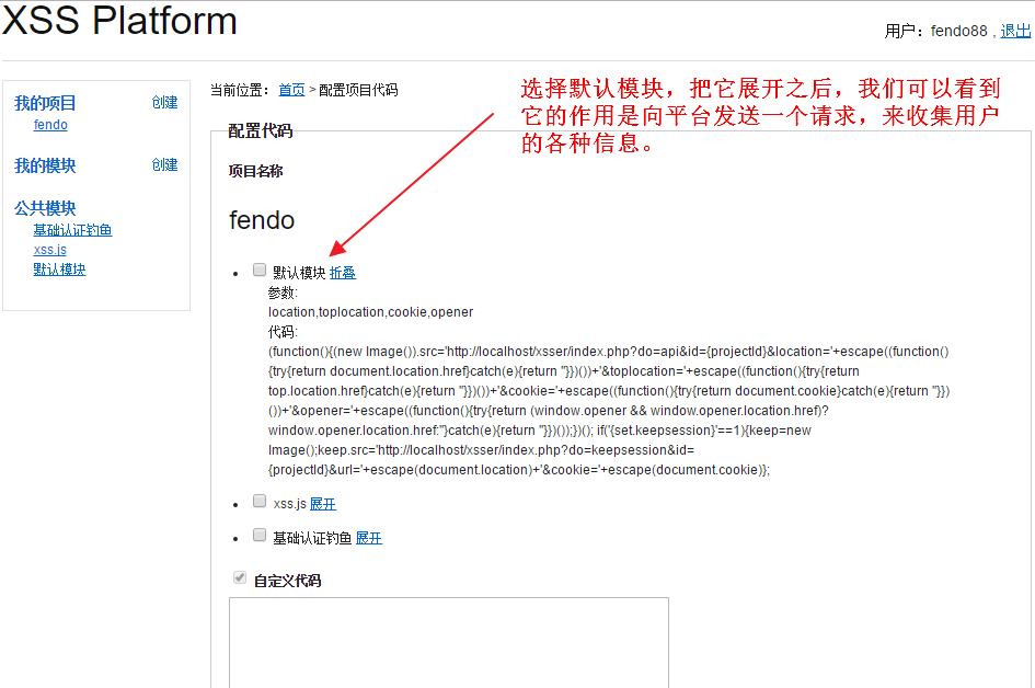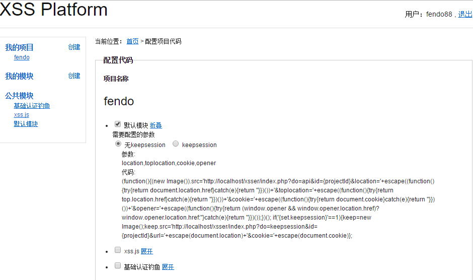 通过 XSS 来获得用户 Cookie 或其他有用信息,利用平台负责接收并保存这些信息。XSS利用平台有很多种如XSS Shell, BeEF, Anehta, CAL9000。这里使用xsser.me、搭建过程可参考这:blog.csdn.net/u011781521/…