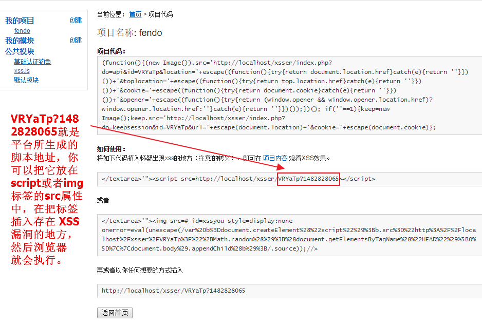 上面的src="xxxx"是我另外创建的一个项目的地址,把你创建好的那个项目,提供的那个地址放进去,就可以了,虽然这个页面没反应,但是xsser.me那个项目就收到消息了。