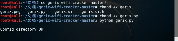 切换到Gerix所在的位置,并启动Gerix工具。执行命令如下所示: