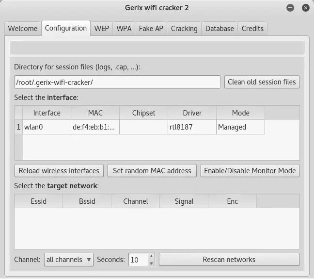 Gerix Wifi Cracker是另一个aircrack图形用户界面的无线网络破解工具。