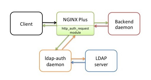 ldap-auth服务给 Nginx 返回状态码 200。Nginx 从后端服务中请求资源。在demo里,后端服务返回以下文本:Hello, world! Requested URL: URL - 如果认证失败,