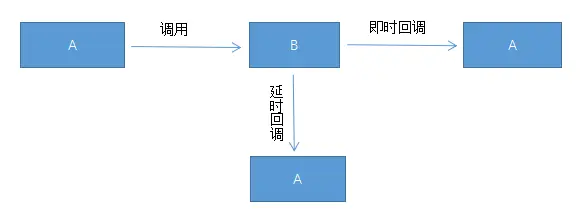 我们知道,两种语言交互,相互调用、传参,接收执行结果等等动作,不外乎在于两个api,(1)主动去调用其它语言的某个方法;(2)接收方法执行的结果两种情况;方法执行的结果,主要又分成两种情况:一种是同步回调;一种是异步回调(也就是需要等待结果回来)。同步回调,也就是我们我们常用的return;异步回调,也就是平时所谓的各种监听,比如异步请求回调结果监听,或者常用的各种listener。比如使用A语言去调用B语言,通信结构图如下: