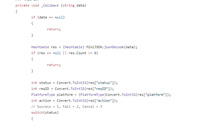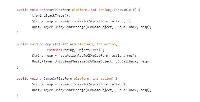 上面创建AndroidJavaObject的时候传的callback,java层回调给C#的时候需要把这个Gameobject,Callback方法名字和传参发送回来,C#就会去找对应的方法去执行;