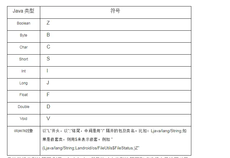 对于jni的字段描述符,网上有很多,可以参考,下面这个表