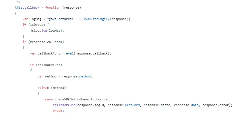同时在回调的时候给回callback参数,可以识别到JS的回调方法,进而去触发它: