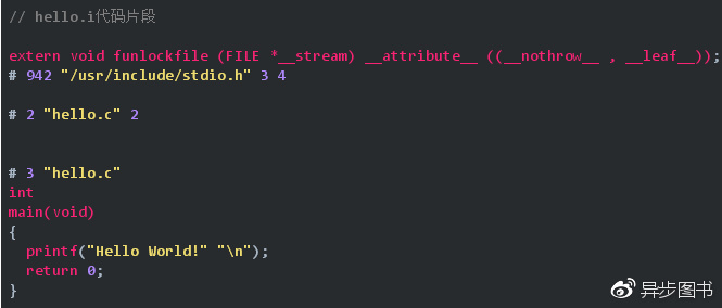 hello.i文件可以作为普通文本文件打开进行查看,其代码片段如下所示: