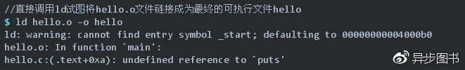 如果直接调用Binutils中的ld进行链接,命令如下,则会报出错误:
