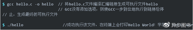 本文为了简化描述与便于初学者理解,将在Linux操作系统平台上编译一个Hello World程序并在此Linux平台上运行作为示例。而嵌入式开发所使用的交叉编译的使用方法与本文所述的编译过程有所差异,本公众号将在后续发文《嵌入式开发的特点介绍》中对嵌入式系统编译进行更多介绍。