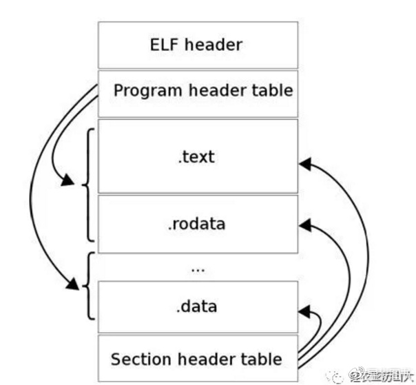 链接器链接后生成的最终文件为ELF格式可执行文件,一个ELF可执行文件通常被链接为不同的段,常见的段譬如.text、.data、.rodata、.bss等段。有关ELF文件和常见段的更多介绍,请参见后文。