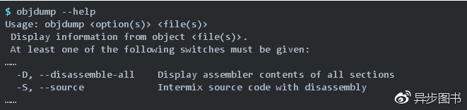 可以使用Binutils中objdump来对ELF文件进行反汇编,可以通过objdump --help来查看其选项: