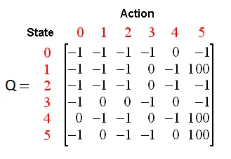 Q 学习是一种强化学习技术,在这种技术中,我们试图近似一个特定函数,使其能为任意环境状态序列得到动作-选择策略。Q 学习是强化学习的一种无模型的实现,其中维护着一个相对每个状态、所采取的动作和所得到的奖励的 Q 值表。一个样本 Q 值表应该能让我们了解数据的结构。在我们的案例中,状态即是游戏截屏,动作则是什么也不做和跳 [0,1]