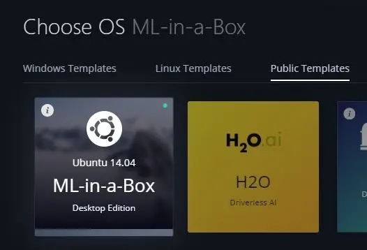1. 选择虚拟机(VM):我们需要一个完整的桌面环境,让我们可以在其中获取截屏并将其用于训练。我选择了一个 Paperspace ML-in-a-box (MLIAB) Ubuntu 镜像。MLIAB 的优势在于预装了 Anaconda 和很多其它的机器学习库。