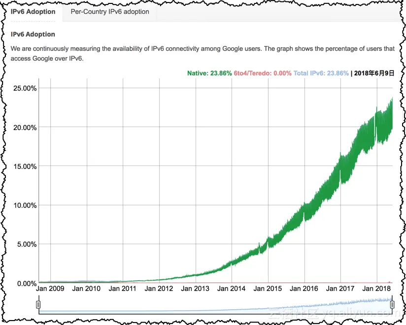 截止本文发稿,谷歌的IPv6统计