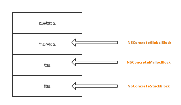 _NSConcreteMallocBlock,也叫堆 block。 堆 block 不是由代码初始化来的,而是由栈 block 调用 copy 方法时从栈内存拷贝到堆内存而得来的。