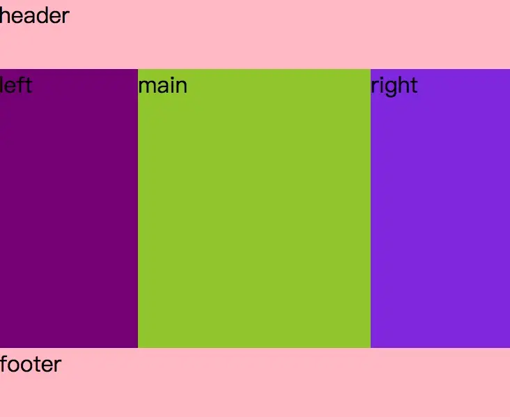 原理:使用了 relative 相对定位、float(需要请浮动,此处使用 overflow:hidden; 方法)和 负值 margin ,将 left 和 right 部分「安装」到 wrapper 的两侧,顾名「圣杯」。