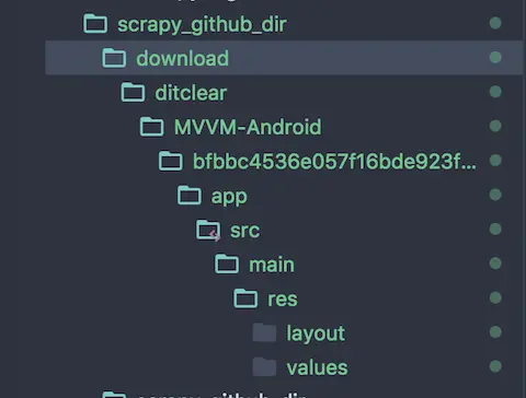 scrapy crawl app -a urls = https://github.com/ditclear/BindingListAdapter/tree/917e254f527d101e3f583c38739a61f3bcffbc11/library-kotlin