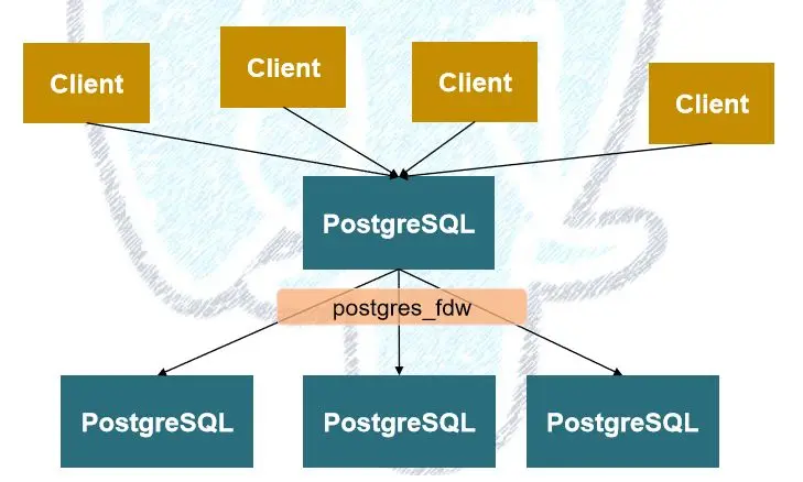 PG社区核心团队的大佬 Bruce Momjian在2016年给社区写了一封邮件提议了一个基于FDW技术的分布式水平扩展方案(即通称的所谓“Sharding”方案),与此同时,老爷子还撰写了一份PPT专门阐述这个想法。基于“对现有PG代码改动最小”这一原则,目前社区已经基本上认可了基于FDW的Sharding方案作为PG源生的分布式实现方案。