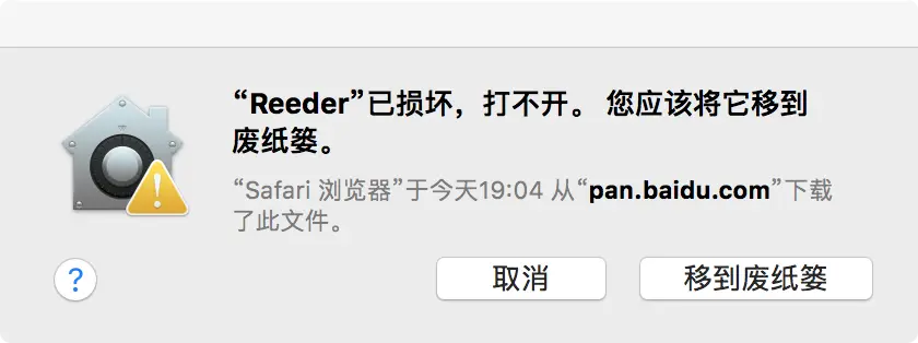 最近在安装一些非来自 App Store 的软件时,提示“软件已损坏” ,如图