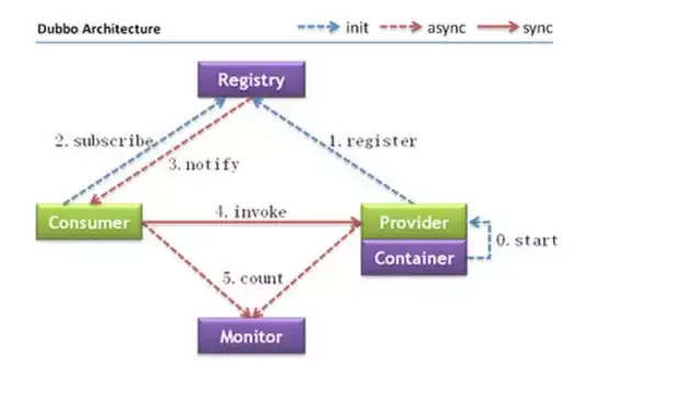 在官方《Dubbo 用户指南》架构部分,给出了服务调用的整体架构和流程: