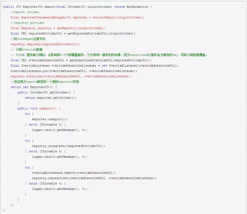 最终返回的 Exporter 实现了 unexport() 方法,这样在服务下线时清理相关资源。