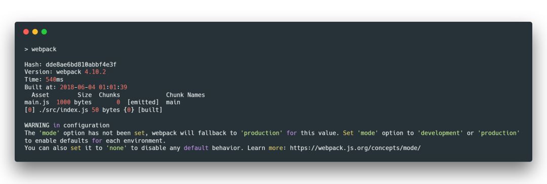 The ‘mode’ option has not been set, webpack will fallback to ‘production’ for this value. Set ‘mode’ option to ‘development’ or ‘production’ to enable defaults for each environment.You can also set it to ‘none’ to disable any default behavior. Learn more: https://webpack.js.org/concepts/mode/