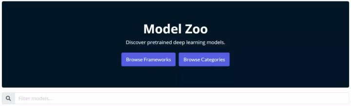 可以从 Browse Frameworks 和 Browse Categories 分别进入以上的框架分类界面和模型分类界面,并按其分类进行浏览。下方的搜索框支持模型名称的搜索。
