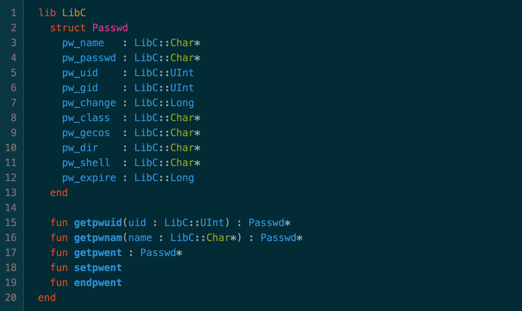 与 C 库的绑定完全原生,并且以 Crystal 编写(与 Python 中的 ctypes 类似,只不过更好)