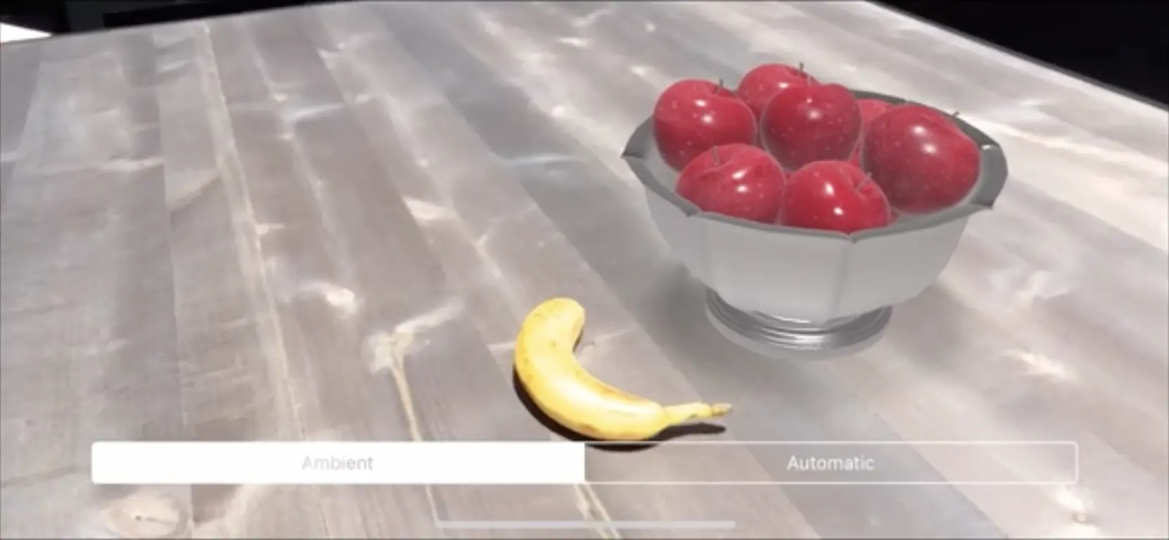 - 使用环境中的真实光照,ARKit 会提供环境光估计(ambient light estimate)用于调整虚拟物体的亮度,这样看起来既不会太亮又不会太暗,和环境融为一体