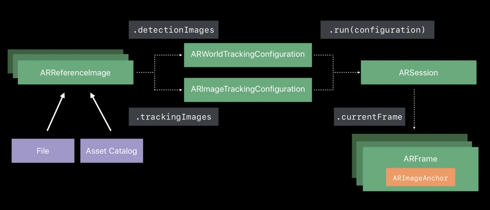 然后把这些 Reference Image 设置为 ARWorldTrackingConfiguration 的 detectionImages 属性: