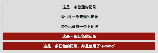 而使用extend方法后则会在.fYpJfw类中实现所有的样式,并不会创建两个css类。