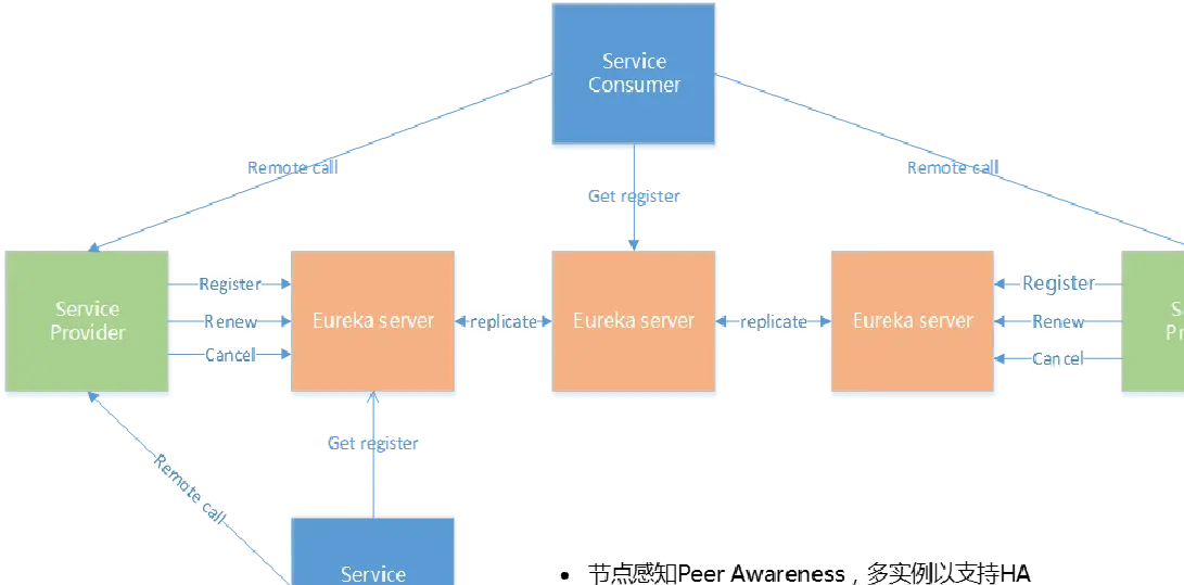 默认情况下,EurekaServer同时也是EurekaClient。多个EurekaServer实例,互相之间通过复制的方式,来实现服务注册表中数据的同步;