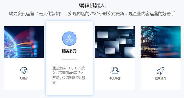 就像Giiso(智搜),其研发的智能编辑机器人,就是为了来帮助中小企业降低用人成本、提升工作效率的一款AI助手。编辑机器人通过集成SDK、URL的接入方式,自动为中小企业运营的APP、微信公众号、QQ号、淘宝号、Web等平台生产内容,还能7x24小时实时更新,其效率是人类编辑的N倍。