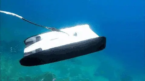 该视频由美国《国家地理》杂志探险家多米尼克•费兹拍摄,使用的水下无人照相机叫做三叉戟。据悉,该无人相机能远程操控潜入100米深的水下,依靠水面上的Wi-Fi浮标操控,有拴绳与水下无人相机连接。事实上,无人相机对大白鲨没什么吸引力,但可以大大保护研究者。
