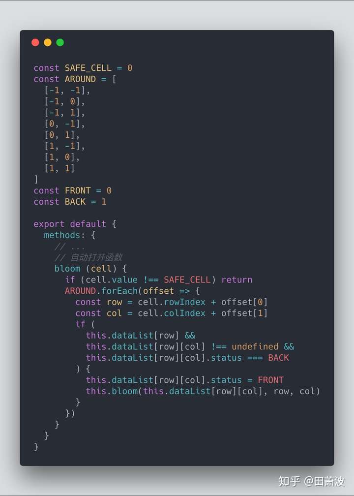 如何像前面动图一样自动打开周围的格子?没错递归。退出条件就是当前翻开的格子不是 `SAFE_CELL`。