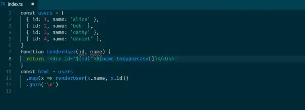 return`<div id="${id}">${name.toUppercase()}</div>`