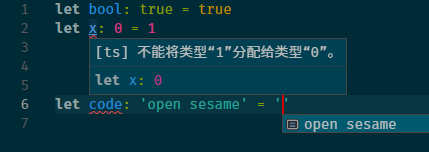 在一个类型中,我们不关心值的次序,也不存在重复的值。由于类型是用代码精确地定义的,那么 TS 语言服务总能判断一个值是否满足某个类型的要求。