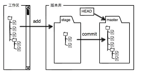 在git中,只有处于track状态的文件才能进行提交。下面给出一张图,帮助大家理解git的提交原理。这张图好像是从廖老师的博客拿的,我也记不清了,已经是好多年前的事了。