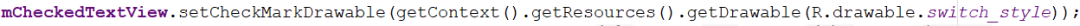 import android.content.Context;import android.util.AttributeSet;import android.widget.CheckedTextView;import android.widget.RelativeLayout;import com.ytg.jzy.p_common.R;public class SwitchButton extends RelativeLayout { CheckedTextView mCheckedTextView; public SwitchButton(Context context, AttributeSet attrs) { super(context, attrs); mCheckedTextView = new CheckedTextView(context); addView(mCheckedTextView); initView(); } void initView() { mCheckedTextView.setCheckMarkDrawable(getContext().getResources().getDrawable(R.drawable.switch_style)); mCheckedTextView.setCompoundDrawablesWithIntrinsicBounds(null, null, null, null); } public void toggle() { mCheckedTextView.toggle(); } /** * 是否处于选中状态 * * @return */ public boolean isChecked() { return mCheckedTextView.isChecked(); } /** * 设置状态 * * @param checked */ public void setChecked(boolean checked) { mCheckedTextView.setChecked(checked); }}