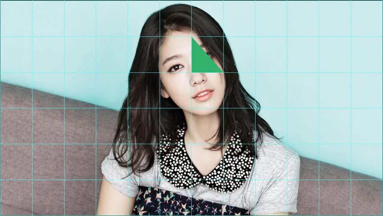 所以,我们虽然改变了每一个三角面所使用的渲染材料,但是我们并没有改变它们的uv映射坐标。文字描述可能不够直观,我们以上面的球面三角面为例,我们来看索引为61的三角面,它的uv映射坐标为[(6/12, 2/6), (7/12, 2/6), (6/12, 1/6)],它负责渲染下图的绿色区域: