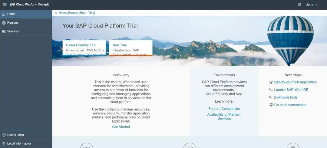 下图是SAP云平台的基于浏览器访问的操作台。