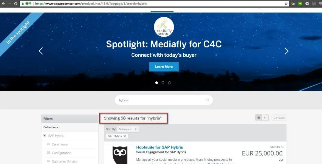 登录SAP App中心,根据Hybris产品线进行过滤: