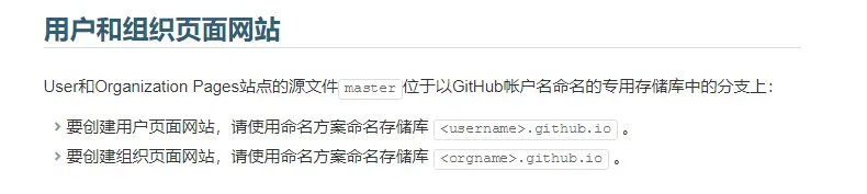 用于存储个人\组织页面Git仓库的命名是有要求的: