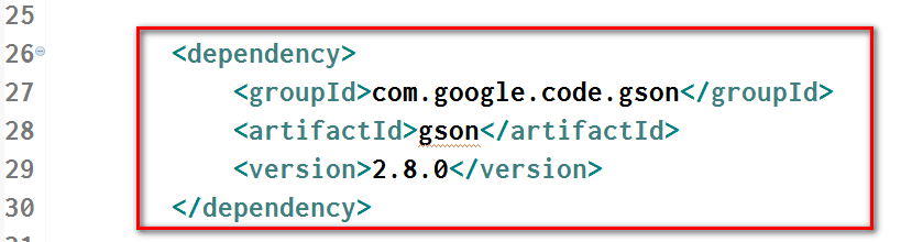 我的pom.xml里定义了一个gson的依赖关系,ABAPer可以把其类比成在我的Java代码里调用Google提供的gson API。