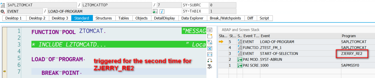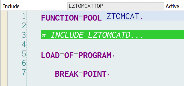 现在我有一个名为ZTOMCAT的function group。其LOAD-OF-PROGRAM就负责弹出调试器。