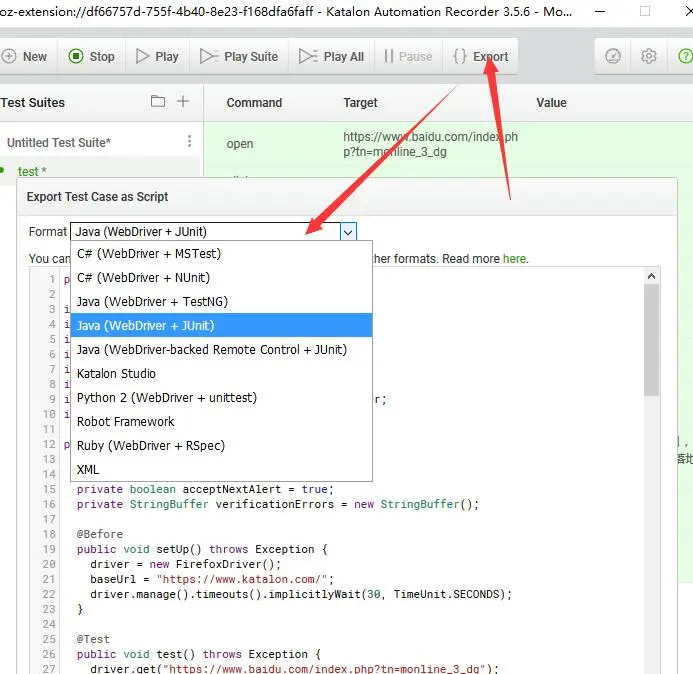 这里是由于新窗口需要切换window,可使用下述代码切换(替换代码中// ERROR: Caught exception [ERROR: Unsupported command [selectWindow | win_ser_1 | ]]这行即可)。