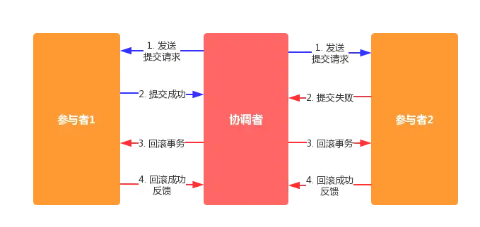 二阶段提交的算法思路可以概括为:每个参与者将操作成败通知协调者,再由协调者根据所有参与者的反馈情报,决定各参与者是否要提交操作还是中止操作。